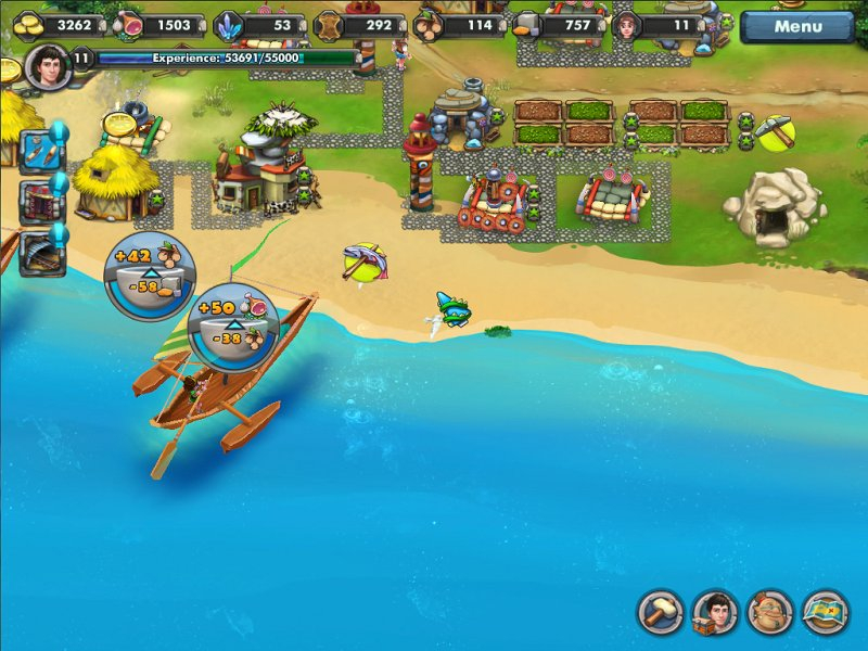 В меню построек вам будут доступны самые разные сооружения: хижины для простых жителей, стрельбища, казармы и шатры старейшин для воспитания воинов, грядки, каменоломни и золотые шахты для добычи ресурсов, а еще вы сможете строить тотемы, которые помогут сделать жизнь на острове еще лучше!