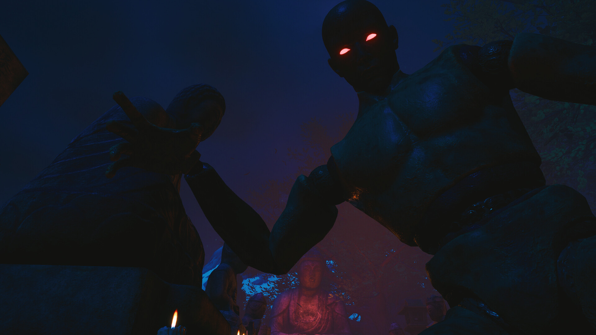 Игра, созданная на движке Unreal Engine 5, предлагает вам исследовать заброшенные дома, заросшие сорняками святыни и увядшие вишневые деревья. Вас окружает гнетущая атмосфера, а призрачные барабаны тайко и напряженные струнные композиции эхом отражаются в тумане и следуют за каждым вашим шагом.